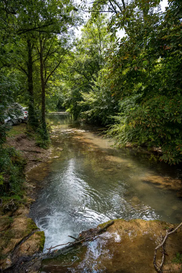 Ik weet even niet goed of ik nu bij de waterval van Baume-Les-Messieurs ben aangekomen of dat dit nog maar een voorproefje is. Ik kan me haast niet voorstellen dat dit het al is want tijdens mijn hele wandeling ben ik nauwelijks iemand tegengekomen, terwijl het hier allemaal ontzettend toeristisch zou moeten zijn.